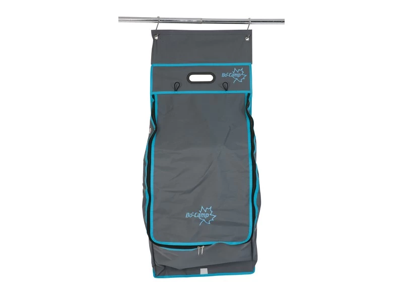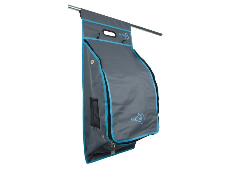 Een zeer stijlvolle 12-vaks (schoen)organizer. Beschikt over 5 ruime vakken, 5 medium vakken en 2 mesh vakken. Ideaal voor het opbergen van schoenen, tijdschriften, toiletspullen etc. De vakken kunnen worden afgesloten door middel van een ritssluiting. Eenvoudig en op diverse manieren te bevestigen. Zo kan dit tentschort met de pees worden opgehangen aan een caravanrails, met het klittenband aan een tentstok of met de zeilogen aan haken. De lussen onderaan zorgen voor extra fixatie. Gemaakt van een hoge kwaliteit Two-Tone 600D Oxford polyester.