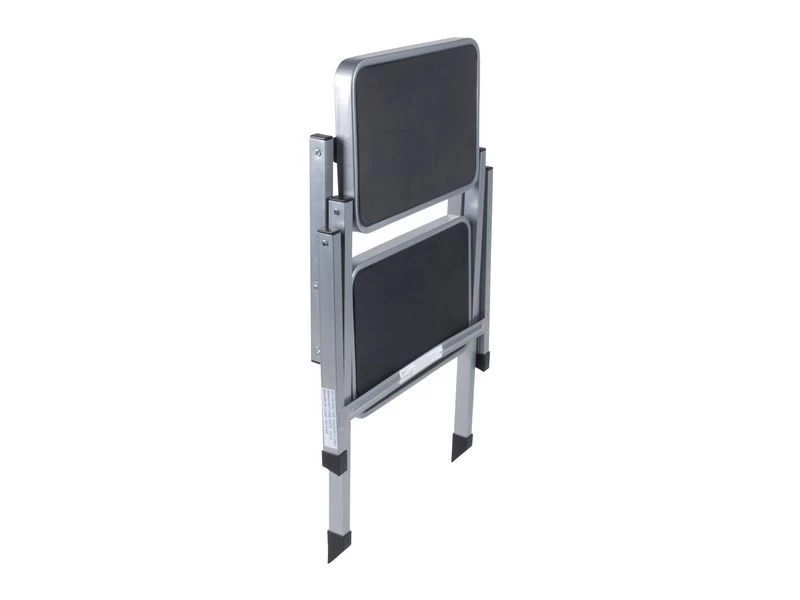 Zeer solide inklapbare dubbele opstap met antislip bekleding.