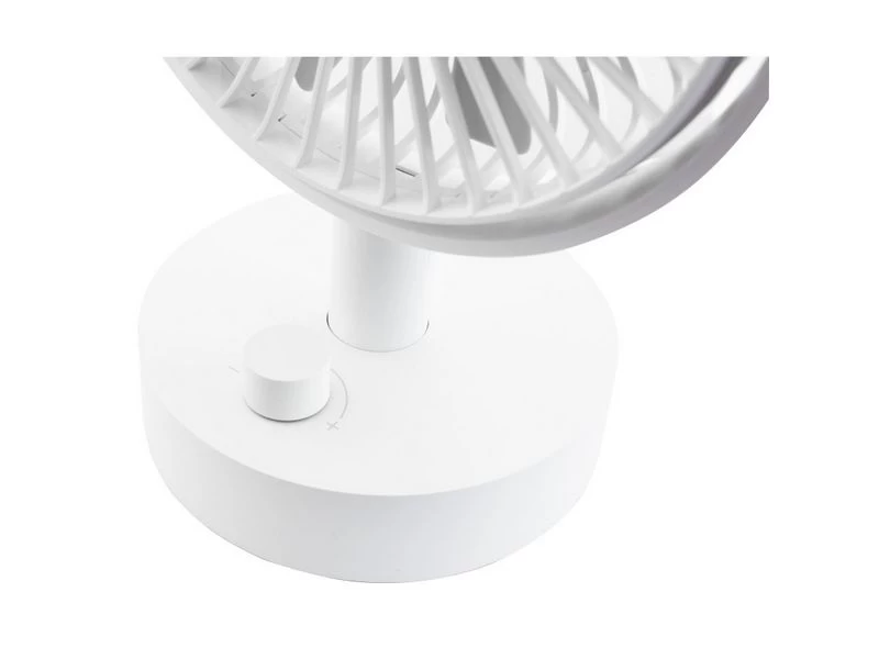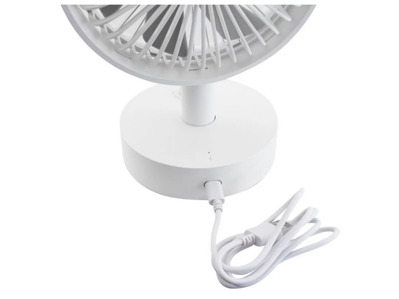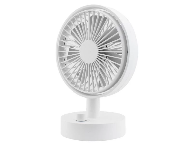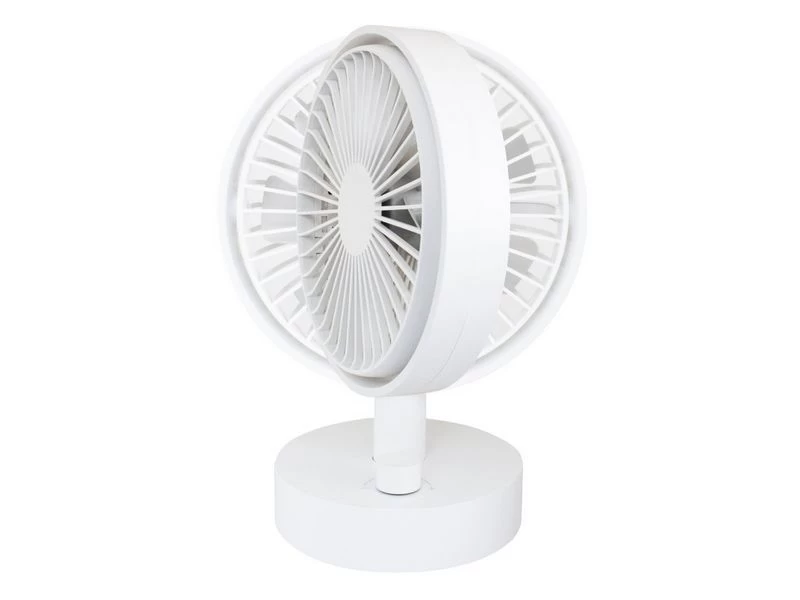 De ventilator kan omhoog en omlaag worden versteld in een hoek van 70?. Traploos regelbare ventilatorsnelheid door aan de knop te draaien. Oscillatiefunctie kan worden in- / uitgeschakeld. De ingebouwde oplaadbare polymeerbatterij van 4000 mAh biedt de ventilator 9 uur werktijd (afhankelijk van de snelheid). De mat afgewerkte coating geeft de ventilator een luxe uitstraling!