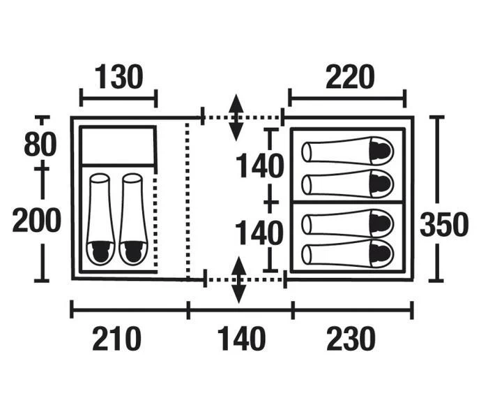 Buitentent : 100 % polyester 3000 mm waterkolom