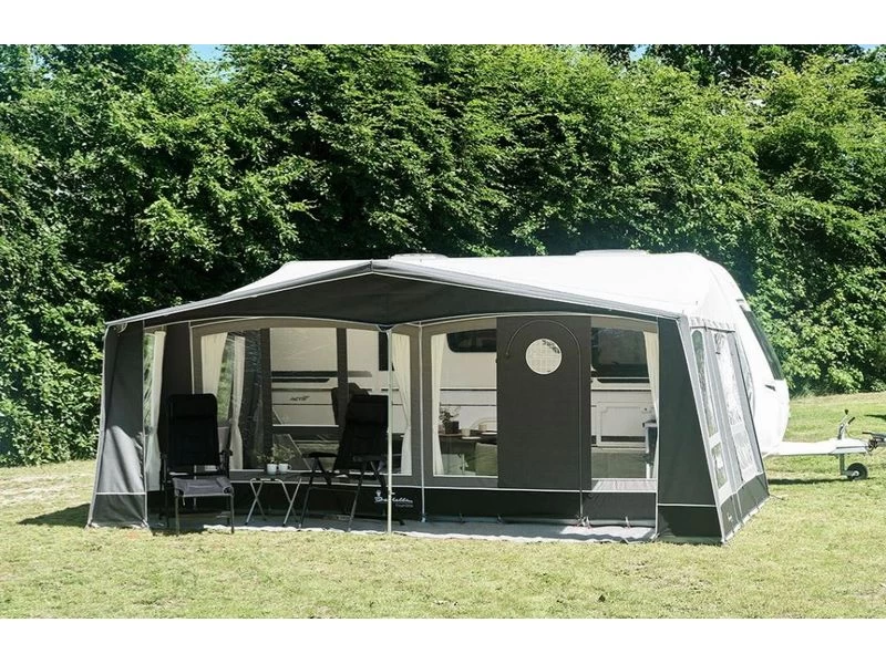 De Forum Etna heeft ons sterke megaframe, waardoor je de stabiliteit krijgt waar een seizoenskampeerder behoefte aan heeft. De klassieke seizoensvoortent is 3,5 meter diep en geschikt voor eigenlijk alle caravanformaten. De Forum Etna is ontworpen in warme donkere nuances die zeer geschikt zijn voor langkampeerders. Het tentmateriaal is gemaakt van het eenvoudig schoon te maken Isacryl dat de kleur vasthoudt en dat door zijn unieke ademende vermogen voor een optimaal binnenklimaat in de voortent zorgt.
