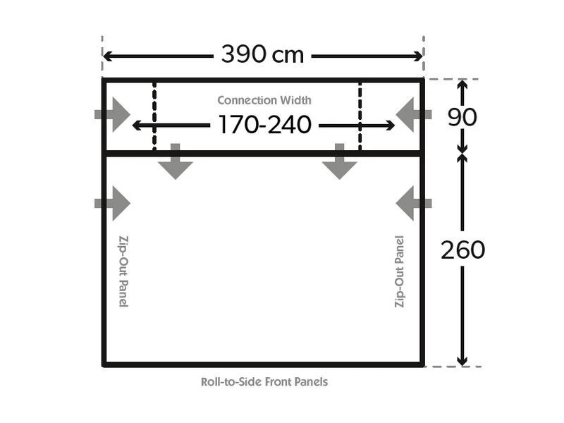 Drive-awaysets bieden een veilige manier om uw voortent aan uw camper te bevestigen. Verbind simpelweg de 8-vormige strip van de pees langs de ene rand voordat u de voorgenaaide voortentpees langs de andere bevestigt. Schuif de 8-vormige strip weg en laat de voortent vrijstaan op uw kampeerplek.