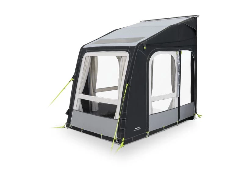Deze veelzijdige voortent is ideaal voor korte en middellange kampeervakanties en kan naar wens worden aangepast dankzij een ruime keuze aan accessoires, zoals gaaspanelen, aanzetstukken en stormbanden.