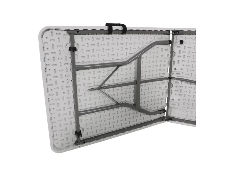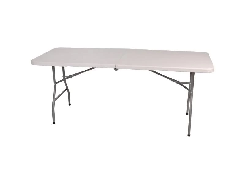 Goed afwasbare tafel, te gebruiken in de tuin, en heel ideaal voor bijvoorbeeld een barbecue. Frame is van staal en het blad is van kunststof.